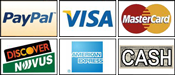 PayPal, Visa, MasterCard, Discover, or American Express (You do not have to have a PayPal account)